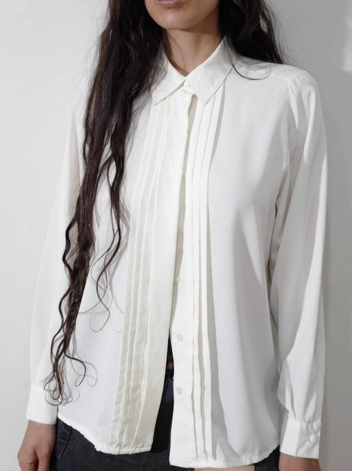 Vintage Alfred Dunner blouse with small embroidered details and pleats.